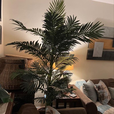 Nearly Natural 6.5-ft Golden Cane Artificial Palm Tree in Metal Planter