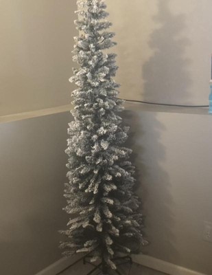 Nearly Natural 6-ft Flocked Pencil Artificial Christmas Tree with 438 Bendable Branches