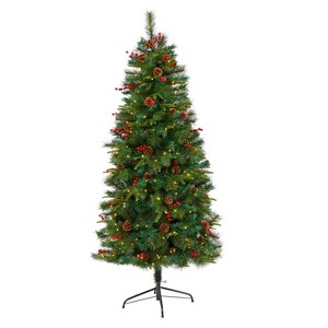 Nearly Natural 6-ft Mixed Pine Artificial Christmas Tree with 250 Clear LED Lights, Pine Cones and Berries - 1 of 4