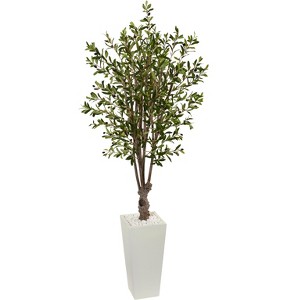 Nearly Natural 6-ft Olive Artificial Tree in White Tower Planter