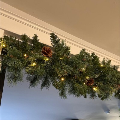 Nearly Natural 6-ft White Mountain Pine Artificial Garland with 35 White Warm LED Lights and Pinecones