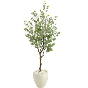 Nearly Natural 63-in Eucalyptus Artificial Tree in White Planter