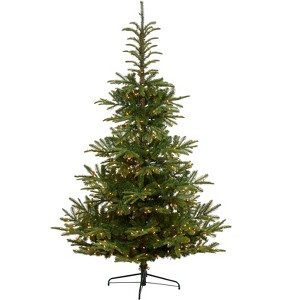 Nearly Natural 7.5-ft Layered Washington Spruce Artificial Christmas Tree with 550 Clear LED Lights and 1325 Bendable Branches - 1 of 4
