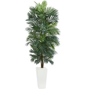Nearly Natural 7-ft Areca Artificial Tree in White Tower Planter