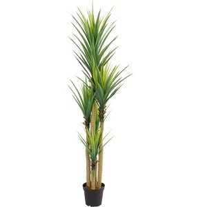 This beautiful artificial dracaena plant offers you a lush greenery all year-round with out the need of sun and water. Its five lifelike brown stems stand tall with spears of dark green leaves. Its wonderful green foliage will enhance the appearance of your sun room, reading nook, dining and living room. Place it in a corner next to your magazine rack or opposite a floor lamp to fill the space.