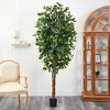 Unlike the real Ficus tree (which is finicky and practically leafless in almost any home light conditions), our Ficus tree is eternally verdant and deep green with 1260 individual leaves on several sturdy branches. Measuring seven feet in height, this wonderful reproduction Ficus would look lovely in a picture window, home entranceway, or even the office.