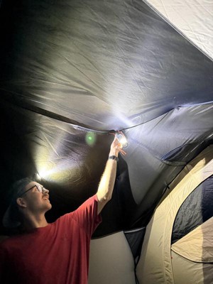 [This review was collected as part of a promotion.] I have not been camping yet as it is too hot for this weather but this flashlight comes in handy at night when walking my dog. Super bright and it covers a large surface area. There is also a dimmable option. Definitely will recommend this for any late night hikes or adventures. There is also a mode where the light is red. 10/10 Will be using this for ghost hunting as well 😂