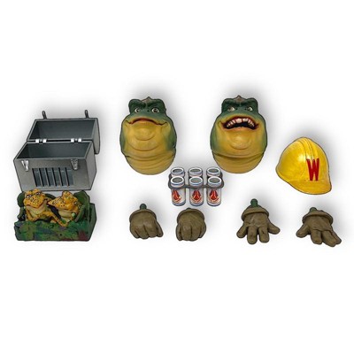 - The figure is fully articulated (including tail) and packed with accessories: includes interchangeable heads, interchangeable gloved hands, “WESAYSO” hard hat, lunchbox, little buddies, cans and soft goods work shirt.