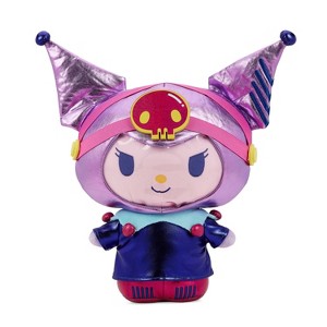 Kidrobot celebrates arcade fever with Hello Kitty® and Friends! Kuromi is dressed in metallic retro fashion for an afternoon of fun with friends at a classic videogame arcade. This adorable 13” plush is weighted at the bottom to stand easily. Add a supercute touch to your plush collection!