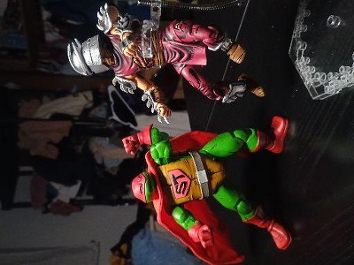 - Complete with soft goods cape, Super Turtle is ready to save the day with multiple heads, hands, and weapons.
