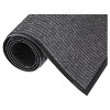 Needle Rib Wipe and Scrape Mat, 36 x 60, in Gray, keep those unwanted guests—dirt and moisture—off the invite list by using Needle-Rib wiper/scraper mats. Rugged grooves and ribbed polypropylene needle fibers trap and hide dirt before it enters your building or office. Beveled edges reduce the risk of tripping, while a vinyl backing helps keep mat in place. Wear-resistant, color-fast design for light- to medium-traffic areas.