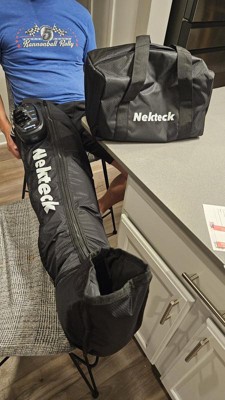 I am absolutely loving the Nekteck Air Compression Full Zipper Leg Massager. This has been great for my restless legs wnf my son likes using it after more intense soccer trainings and tournaments. It is rechargeable and comes with a convenient bag for storage. I would definitely recommend!