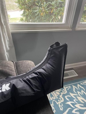 This on the go compression boot will probably great for many people. First off, the fact that these fold and stash into the bag is a major plus—both for storage and portability. Unfortunately the fit was an issue for me. I’m on the shorter side (5’3”) and have a long torso and short legs. This boot extended uncomfortably high for me, and the compressions hurt at the highest point on the leg—even at the lightest setting. For reference, I regularly use another brand of compression boots that offers length options. The short length on those boots, even at the highest compression setting, has never produced that amount of discomfort. Also, the compressions delivered by this boot didn’t feel very even. I think for someone with longer legs who is looking for a compression boot at a relatively low price point, this may be well suited for your needs. (Important note: my husband is 5’10” and has long legs and didn’t experience discomfort when using these. He did, however, prefer the compression boots I use regularly even though they’re the shorter length, mainly for the evenness of the compressions.)