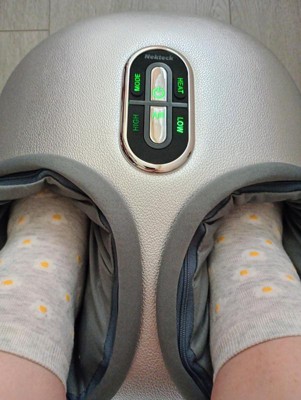 This really provides a deep massage for your feet. The intensity of the deep-kneading and air compression is impressive, you feel it on every part of your foot. When I first started using it, I couldn't handle it for too long. Now, I've gotten used to it and can keep my feet in the machine for the full 15 minutes, then it automatically shuts off. I love that it isn't complicated to use, there are just a few buttons. I'm looking forward to using the heat function when it gets colder. I was surprised that the shell isn't a hard plastic. It's more flexible, so it doesn't feel like the highest quality material.