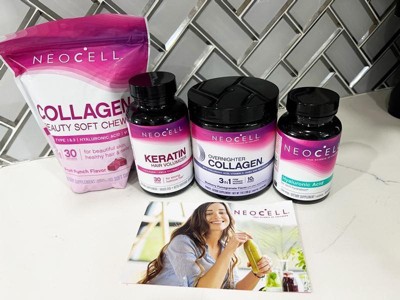 [This review was collected as part of a promotion.] I received these products for free from Influenster and NeoCell in exchange for my honest review. Neocell Keratin Hair Volumizer has helped with strengthening my daughters damaged hair. Her hair was damaged from having her hair colored from brown to blonde. Since using this she has seen an improved difference with the strength of her hair prior to incorporating this into her hair care routine. These pills are rather large and tough to swallow if you try to take them both together. She takes then 1 at a time due to the size. Overall its worth a try if you are looking to strengthen your hair from within
