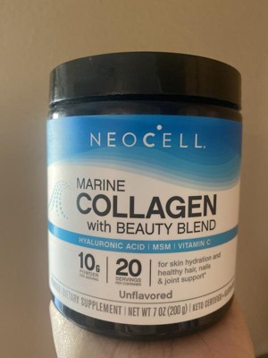 NeoCell Marine Collagen Dietary Supplement Powder, Unflavored, An alternative to bovine collagen, NeoCell Marine Collagen with Beauty Blend is made with flavorless, odorless, and highly absorbable marine collagen powder. It provides 10 grams of powder per serving. NeoCell Marine Collagen is formulated to support collagen formation, skin hydration, and joint health. Vitamin C aids in healthy collagen formation, and a prebiotic Beauty Blend includes MSM and hyaluronic acid to support skin hydration and joint health. Support healthy hair, skin, and nails with just one daily serving mixed into your favorite beverage. NeoCell Marine Collagen is gluten-free and keto certified and is suitable for a pescatarian diet. It is also IGEN Non-GMO tested. It contains no soy, wheat, or artificial flavors. These statements have not been evaluated by the Food and Drug Administration. This product is not intended to diagnose, treat, cure, or prevent any disease; This product does not contain common GE genes or proteins.