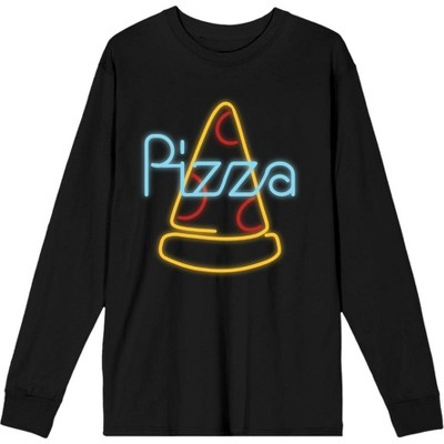 Neon Pepperoni Pizza Sign Adult Crew Neck Long Sleeve Tee