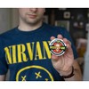 - A COOL CARTOON - Round button pin features a cartoon caricature of Stan Lee.