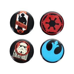 Wear your love of Star Wars with this button 4-pack! 1 inch buttons depict Rebel Alliance and Imperial logos. Sure to make a great gift for your favorite Star Wars fan! Put on bags, backpacks, purse, lanyards or jacket. Officially licensed.