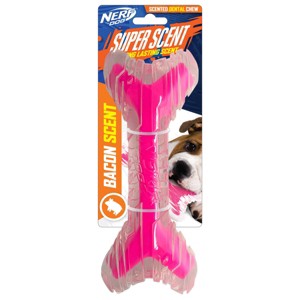NERF 9" Bacon Super Scent Bone Solid Core Dog Toy - Clear Pink