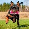 - Material is easy to wipe clean after a full day of slobbery fun.