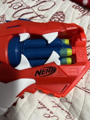[This review was collected as part of a promotion.] This is an awesome toy for any Dino lover! It’s a nerf gun that looks like a dinosaur, so it’s the best of both worlds. It shoots far and is easy to load. It’s not super big or super small, it’s a great size!