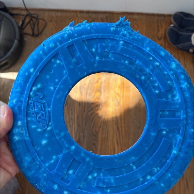 Unsafe toy, my dog who doesn’t destroy any of his toys had a chunk bitten out of it within 5 minutes of playing fetch. We have other Nerf toys so I had no hesitation purchasing this. However it will be returned. Had I not been careful watching him he could have swallowed the piece that broke off causing who knows what kind of damage to him.