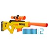 The Nerf Fortnite BASR-L blaster is inspired by equipment in Fortnite, capturing the look of the equipment from the popular video game. The BASR-L blaster features bolt-action, clip-fed blasting and includes a 6-dart clip and 12 Elite Nerf darts. Adjust your aim by looking through the removable Nerf scope and lining up the crosshairs on your target. To use this Nerf Fortnite blaster, load 6 foam darts into the clip, insert the clip into the blaster, move the priming bolt backward and forward, and press the trigger to unleash a dart. No batteries required. Fortnite Nerf blasters are the perfect gifts for Fortnite fans and great for action-packed outdoor games. Eyewear recommended (not included).
