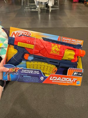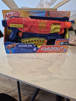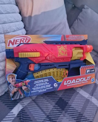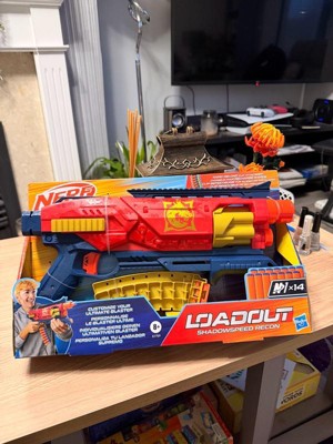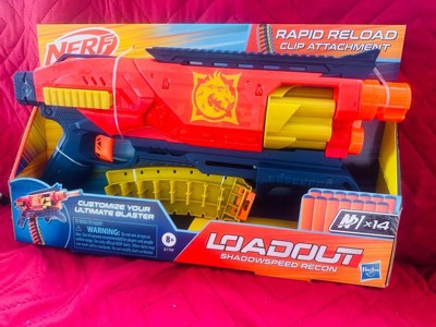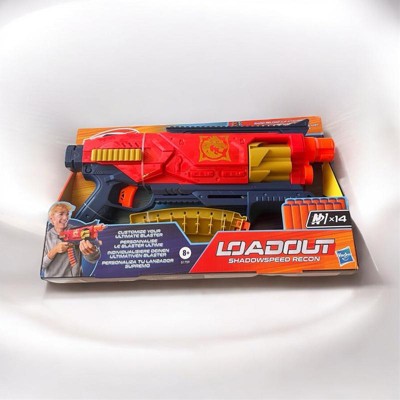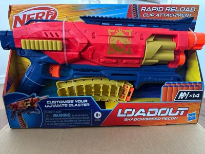- NERF LOADOUT SHADOWSPEED RECON BLASTER WITH DART STORAGE ATTACHMENT: Rapid reloading! The dart storage attachment gives you additional darts right on the blaster for lightning-fast reloads