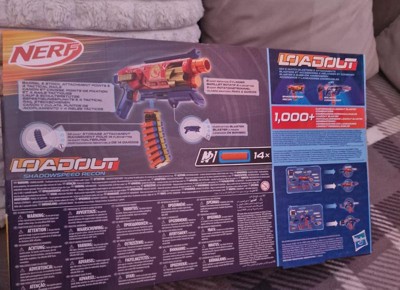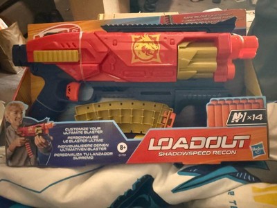 [This review was collected as part of a promotion.] Bring video games to life and customize your ultimate blaster! Nerf Loadout dart blasters include interchangeable attachments to mix and match for more than 1000 combinations! The Nerf Loadout Shadowspeed Recon blaster includes a 14-dart storage attachment for rapid reloading that'''s interchangeable with all other Loadout blasters. Fire into stealth missions with this pump action blaster that has a 6-dart revolving cylinder and features the epic Shadowspeed Recon skin. The Nerf Loadout Shadowspeed Recon blaster includes 14 Nerf N1 darts designed for extreme accuracy, speed, and distance. Build your Nerf Loadout blaster stockpile for endless customizable options (each sold separately, subject to availability). Nerf N1 darts are compatible only with Nerf N1 dart blasters.