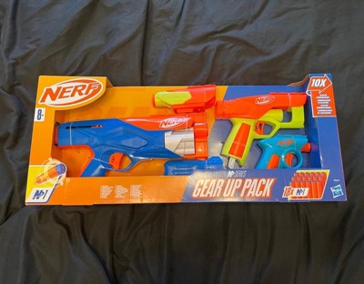 - NERF N SERIES GEAR UP PACK: The set includes 3 different blasters, giving you multiple options to choose from when you're playing in a Nerf battle