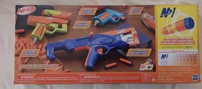 The Nerf brand levels up your game with high-performance Nerf N Series dart blasters and Nerf N1 darts! You have the skills as a Nerf battler, now you have the blaster and darts to gain a superior edge in indoor and outdoor play. From the creators of the foam dart, the Nerf brand unleashes the next evolution in foam dart blasting with Nerf N Series N1 darts, delivering EXTREME ACCURACY, SPEED, and DISTANCE! The Nerf N Series Gear Up Pack includes 3 different blasters and 2 Nerf accessories to create 10 different blaster styles. Build your Nerf stockpile and be ready for whatever the game brings with this set that includes 18 Nerf N1 foam darts. The Flex blaster and Dealer blaster are single-fire blasters with pull-down priming. The bolt action Wielder blaster fires 4 darts in a row. The stock attaches to 2 of the blasters. The scope attaches to all 3 blasters. Nerf N Series blasters are compatible only with Nerf N Series N1 darts. Eyewear recommended (not included).
