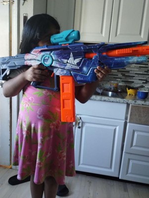 [This review was collected as part of a promotion.] My 8 year old is obsessed with this nerf gun. He loves how cool it looks! He also really likes that he can “nail” his big sister now without question in the head when they play around the house. He has been having endless fun with his friends playing battle and having quality outdoor time together. Pretty amazing quality. All kids would love this! Now to get them to stop shooting my TV! lol!