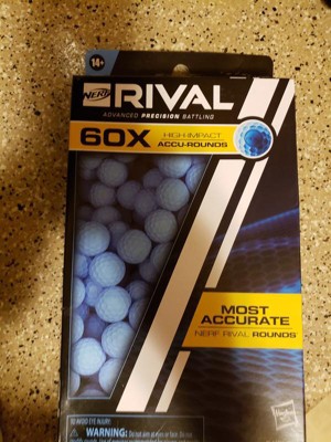 - INCLUDES 60 NERF RIVAL ACCU-ROUNDS FOR USE WITH ALL NERF RIVAL BLASTERS: Nerf Rival Accu-Rounds are compatible with all Nerf Rival blasters (blasters each sold separately, subject to availability)