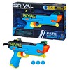 - NERF RIVAL FATE XXII-100 BLASTER: Breech-load, single-round blaster with priming t-bar, and trigger lock. Fires rounds at a velocity of 90 feet per second