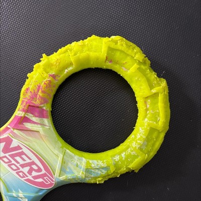 Dog was able to take consistent bites out of this toy. Disappointing we had to throw away after only playing with it twice.