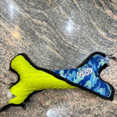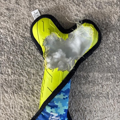 NERF Tuff Rubber Nylon Plush Bone Ploy Filled Dog Toy - Green/Blue - 11"