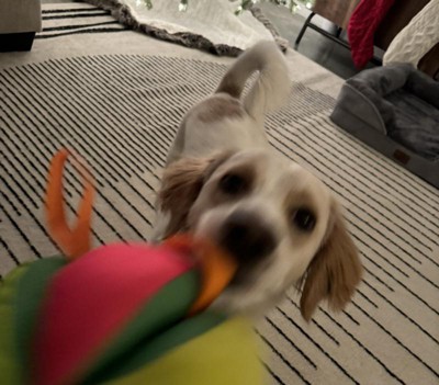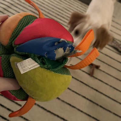 My Shih Tzu LOVES this ball but the orange tags have all come off, and parts have split open causing the stuffing to come out. We’ve bought him 3 only bc it makes him so happy but he’s gone through them pretty fast.