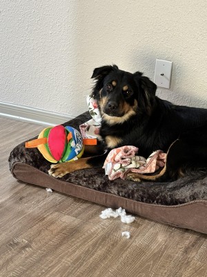 My 10 month old pups loved this but they shredded the fabric in seconds and this has tons of stuffing. I feel they would have done better not making it with so many sections