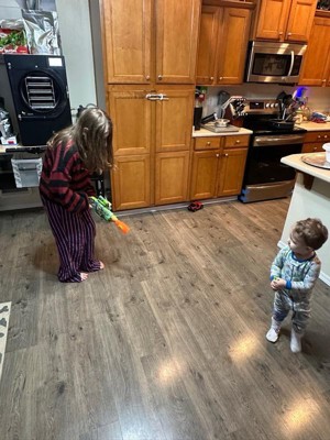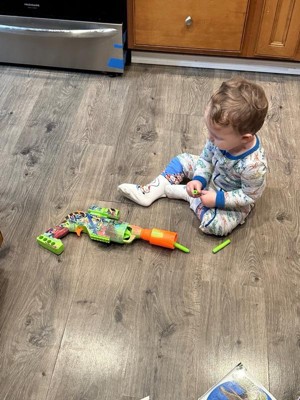 [This review was collected as part of a promotion.] My baby obviously loves this! He loves playing with he’s little friends when they come over. But the only thing I don’t like is that the bullets hurts when he shoots people or me