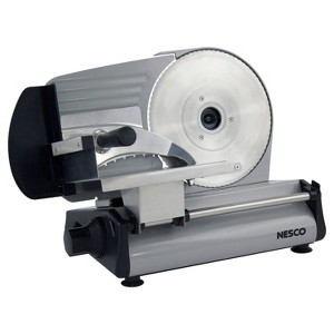 Slice meat, cheese, bread, vegetables and fruit quickly and easily with the NESCO FS-250 Food Slicer. Features include a variable thickness control dial that lets you decide the thickness of your slices. Choose from deli thin to 9/16" thick. The 180-watt motor provides the power to slice and the large multi-purpose 8.7 inch stainless steel blade can handle a wide range of food sizes and shapes. Both the food carriage and blade are removable for quick cleanup. A recessed power switch ensures safe use and eliminates accidental engagement while non-slip feet provide a stable base on most surfaces. The NESCO FS-250 Food Slicer is designed for elegance and high performance so you can skip the deli line.
