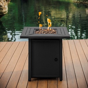 - Durable Polyrattan Wicker: The polyrattan wicker weave adds a touch of elegance while maintaining sturdiness. It’s resistant to UV rays, moisture, and fading, ensuring your fire pit table remains beautiful over time.