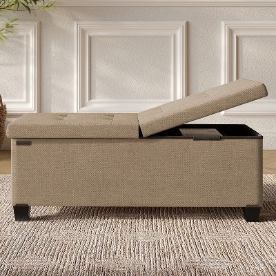 - Durable linen fabric blends seamlessly with any décor and works as a footrest, entryway bench, or end-of-bed seat,