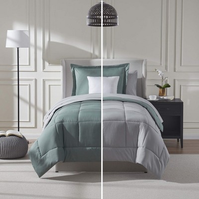 Nestl 7 Piece Reversible Twin XL Bedding Set Sage Green, Dorm Room Essentials Bed in a Bag, Twin XL Comforter Set for College with Cooling Pillows