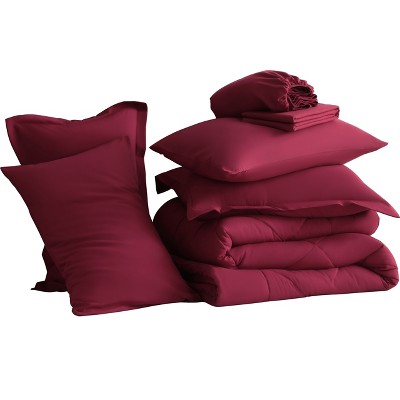 - Queen bed in a bag Set Includes: 1 Comforter 88"x88", 1 Fitted Sheet 60"x80", 1 Flat Sheet 90"x102", 2 Pillowcases 20"x30", 2 Pillow Shams 20"x26"