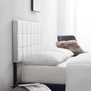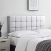 Indulge in the beauty of modern elegance with Nestl’s Button Tufted Square Upholstered Headboard. Crafted with precision and attention to detail, this headboard is built to last with sturdy metal legs and a solid wood frame, and features faux leather upholstery in a classic button tufted design that adds texture and comfort, plus adjustable height for a perfect fit. Sizes & Dimensions: Twin: 41.1” L x 2.55” D, Full: 56.1” L x 2.55” D, Queen: 62.2” L x 2.55” D, King: 78.5” L x 2.55” D