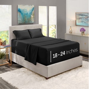 - EXTRA DEEP POCKET SHEETS: Deep pocket sheets fit deep pocket 18, 20, 21, 22, and 24-inch mattresses. These are great for extra deep mattresses and fits well mattresses with 3 inch or 4 inch memory foam mattress toppers or big mattress pads! A stretchable elastic all around the entire sheet ensures a tight, secure fit that won’t ride up or move around in middle of the night.