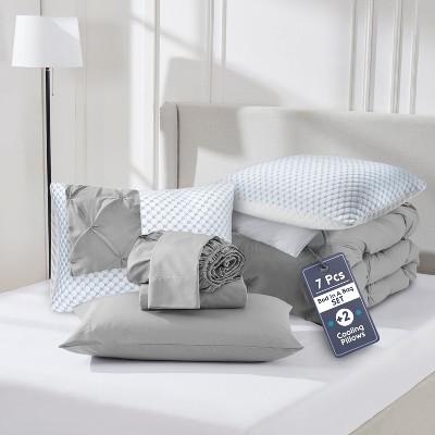 Nestl Twin XL Comforter Set, 7-Piece Pintuck Twin Bedding Set Grey Lavender, College Dorm Bedding, Bed in a Bag Twin XL with Down Alternative Pillows