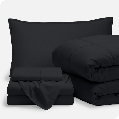 Nestl Twin XL Size Comforter Set, 7 Piece Pintuck Twin XL Bedding Set Black, College Dorm Room Essentials Bed in a Bag Twin XL with Cooling Pillows