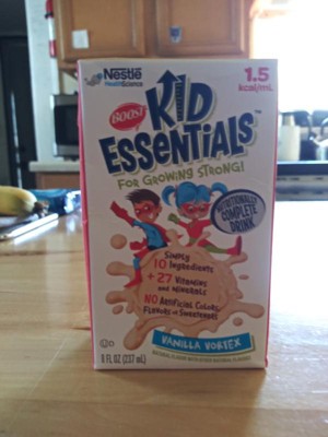 Boost Kids Essentials Vanilla Nutrition Drink is specially formulated for children to support growth and development. Each 8oz serving provides protein, calories, and 25 essential vitamins and minerals, including calcium and vitamin D for bone health. With a kid-friendly vanilla flavor, this drink helps fill nutritional gaps and offers balanced nutrition in a convenient ready-to-drink bottle. Case includes 24 bottles.